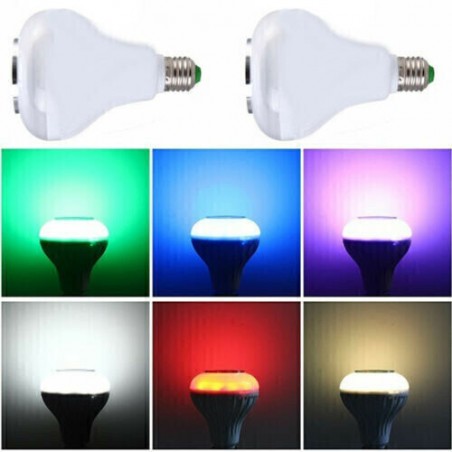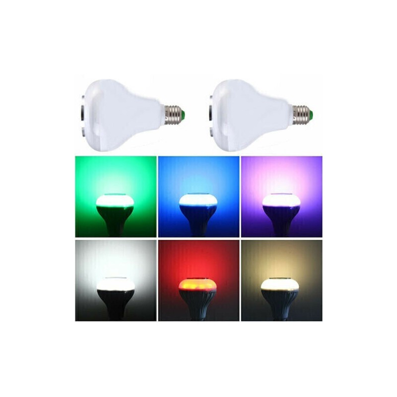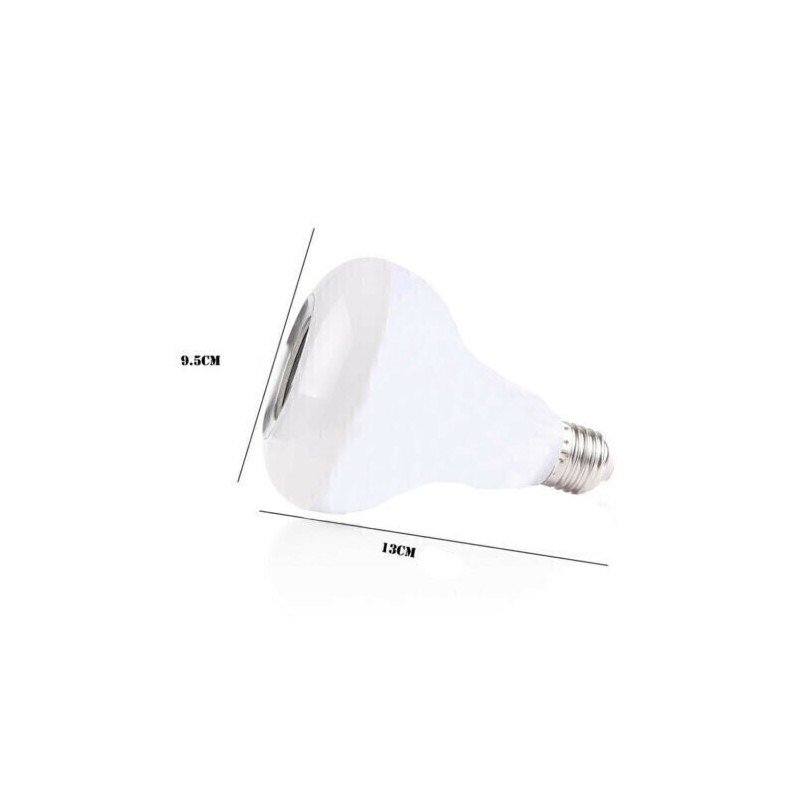 Puede ser controlado vía bluetooth Apariencia de la lámpara LED Conexión inalámbrica bluetooth Base de la lámpara E27, tipo tornillo Volumen ajustable de luz y música. Luz brillante, comparable a una bombilla halógena de 50 vatios. Especificación: Color de la cáscara: blanco Interfaz: E27 Voltaje de trabajo: AC100V ~ 240V / 50-60Hz Potencia: 12W Potencia LED: 6W Potencia del altavoz: 3W Respuesta de frecuencia: 135Hz a 15KHz Versión inalámbrica: 3.0 Configuración de soporte: A2DP Gama de radio: 10m (33ft) El color de la luz: RGB 16 color con el mando a distancia. Amplificador: Clase D Entrada de señal: bluetooth. (2. Transmisión Bluetooth 4G) Distancia de transmisión de Bluetooth: 5-10 metros Contraseña de conexión Bluetooth: no Temperatura de trabajo: -40 ~ 80 grados Tamaño del producto (L x W x H): 9.4 x 9.4 x 13 cm El paquete incluye: 1 x lámpara LED (con altavoz Bluetooth) 1 x control remoto (incluye batería CR2032)