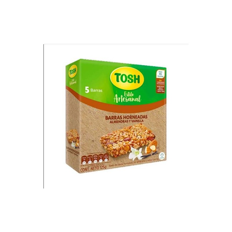 BARRA DE CEREAL TOSH ARTESANAL ALMENDRAS Y VAINILLA x125gr x5und