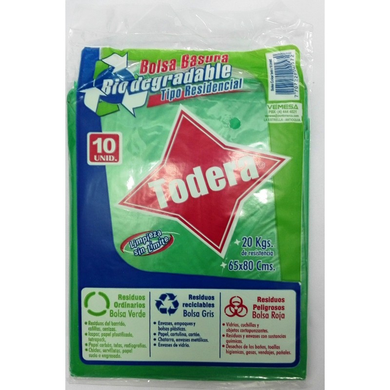 BOLSA BASURA TODERA BIODE VERDE 65x80 x10und
