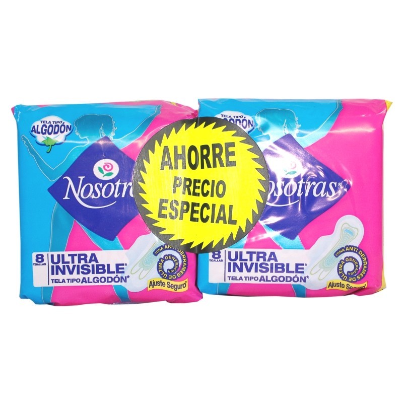 TOALLAS NOSOTRAS ULTRA INVISIBLE TELA 2 X 8 PRECIO ESPECIAL