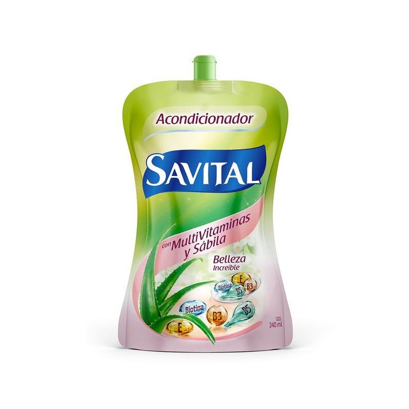 ACONDICIONADOR SAVITAL MULTIVITAMINAS Y SABILA SACHET X340ML CON VALVULA