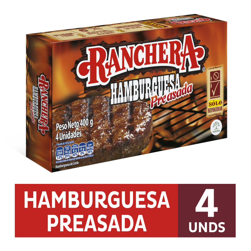 CARNE DE HAMBURGUESA ZENU X400GR RANCHERA